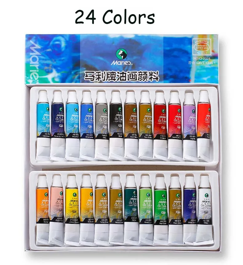 Pintura a óleo para artistas 12/18/24 cores, tubo de alumínio de 12 ml, desenho, pintura a mão, escola, artigos de papelaria, suprimentos de arte