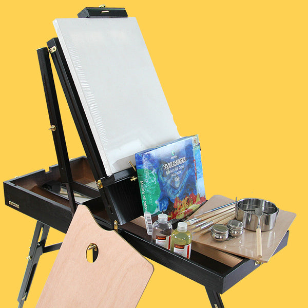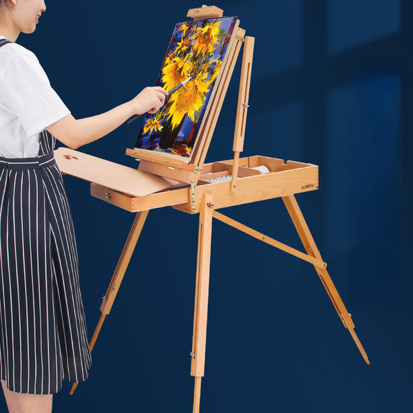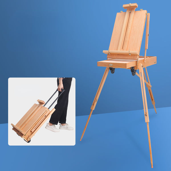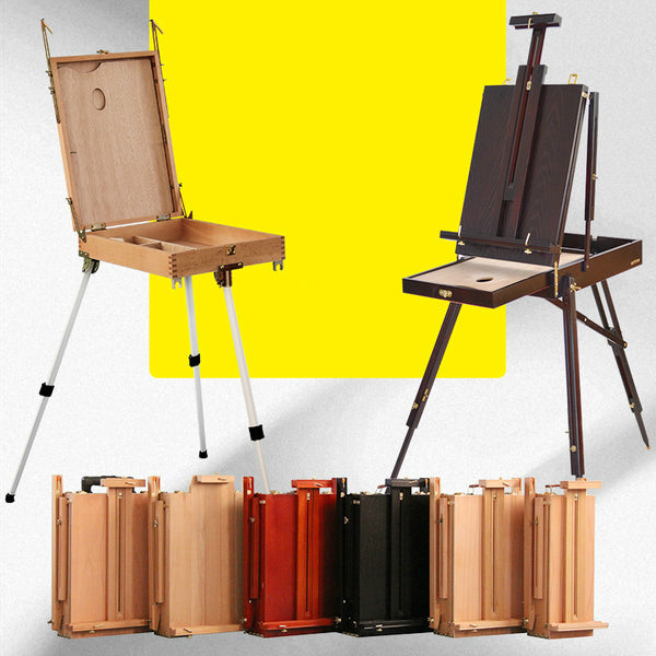 AOOKMIYA Wooden Easel Caballete De Pintura Portable Easel Box Painting Artist Sketch Oil Painting Stand Wood Pull Rod Easel Art Supplies