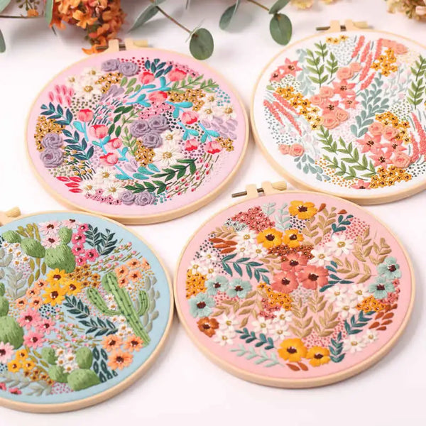 AOOKMIYA Embroidery Kit for Beginners and Embroidery Enthusiasts - Includes Floral Landscape with Thread Needles