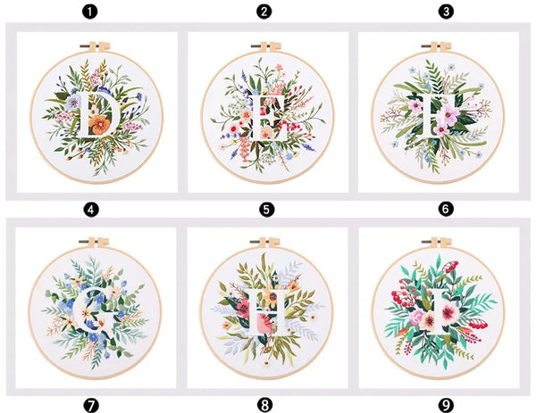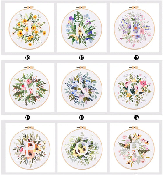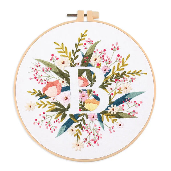 AOOKMIYA Floral Embroidery Kit for Beginner and Adults Cross Stitch Kits Embroidery Starter Kit with Initial Letter and Flower Pattern