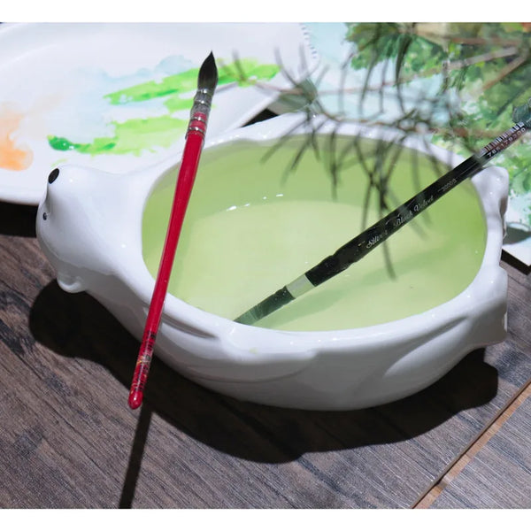 Note: The plate and pen holder are made of matte sesame glaze, please understand if there are black spots, the brush bowl is glossy.
