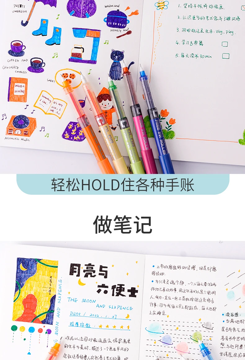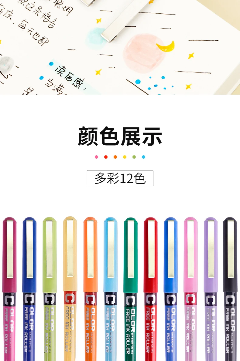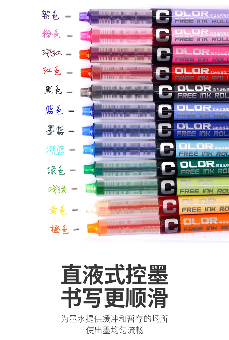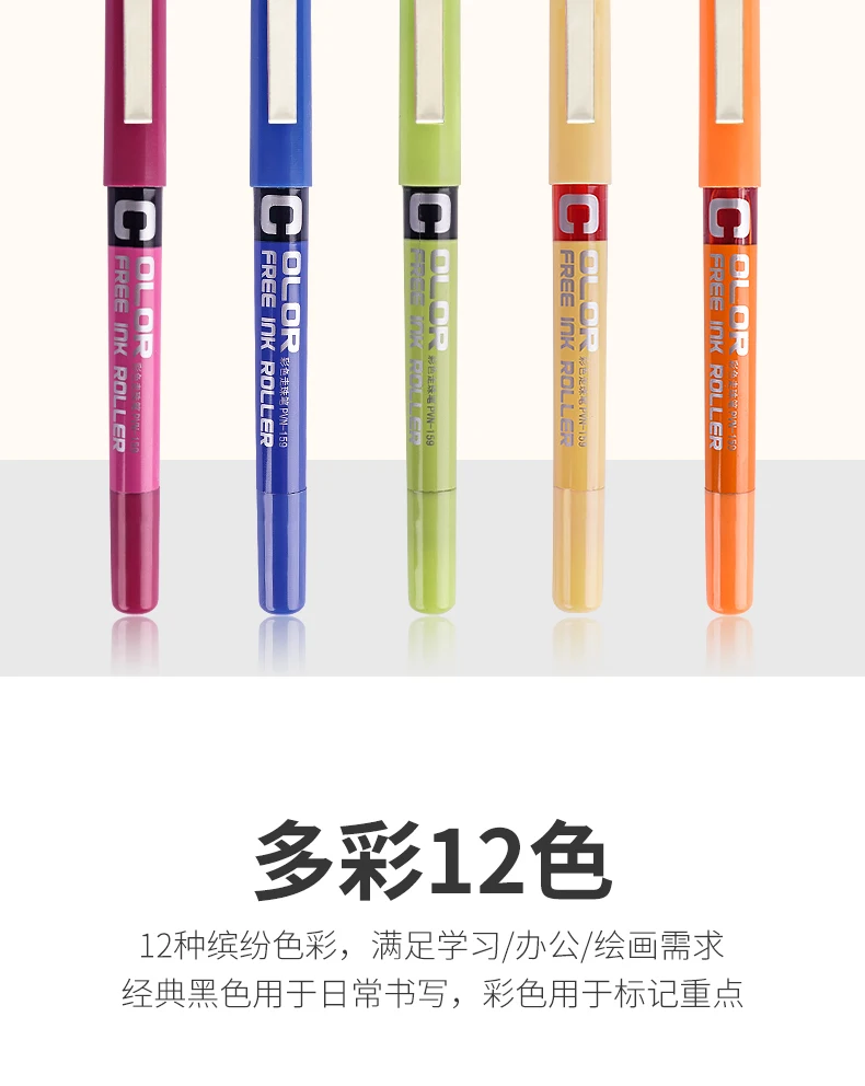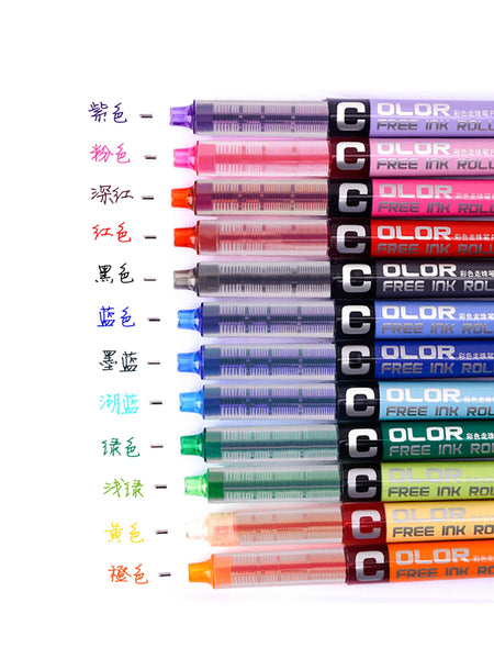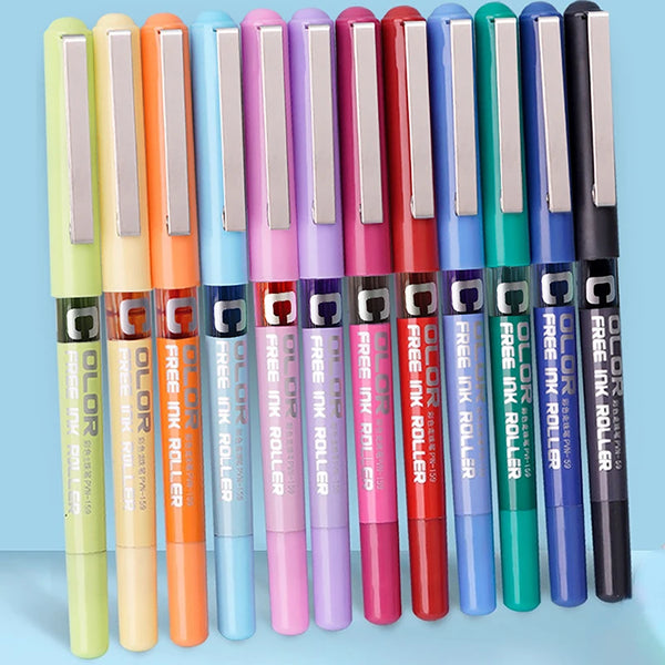 12 Colors Precise Stick Liquid Ink Roller ball Pens, Extra Fine Point, 0.5mm Super Smooth Quick Drying Skip-free Writing