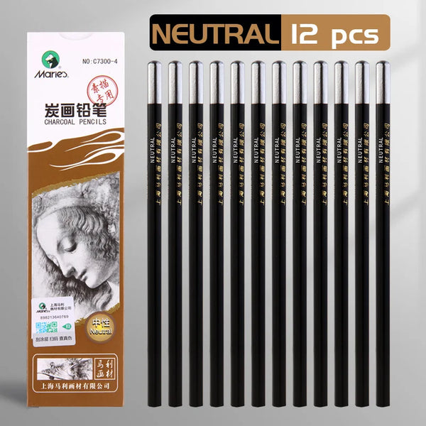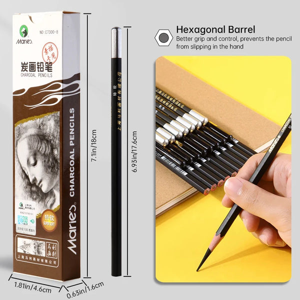 AOOKMIYA 12pcs Marie's Charcoal Pencils,Extra Soft/Soft/Medium Art Graphite Pencils Set for Drawing,Sketching,Shading,forArtists,Adults