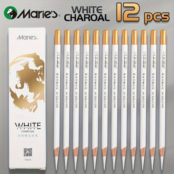 AOOKMIYA Marie's 3/6/12pcs White Charcoal Pencils Set,Sketch Highlight Pencils for Drawing,Sketching,Shading,Blending for Adults,Students