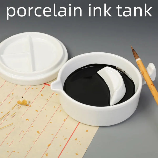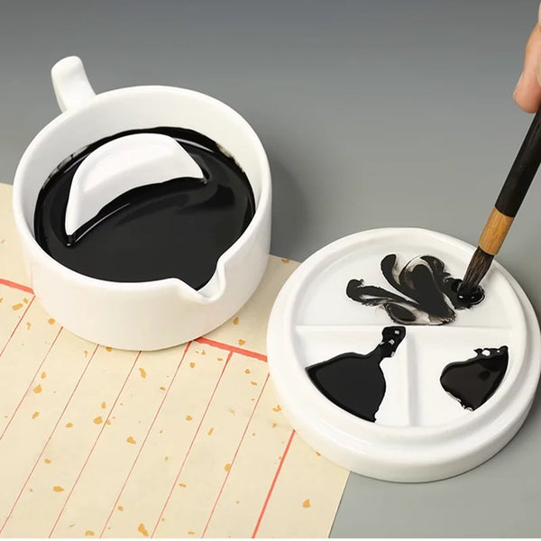 Cerâmica com Tampa Placa De Tinta De Porcelana Branca Caligrafia Placa De Tinta Pintura PalettePen Prateleiras Escova Pintura Suprimentos