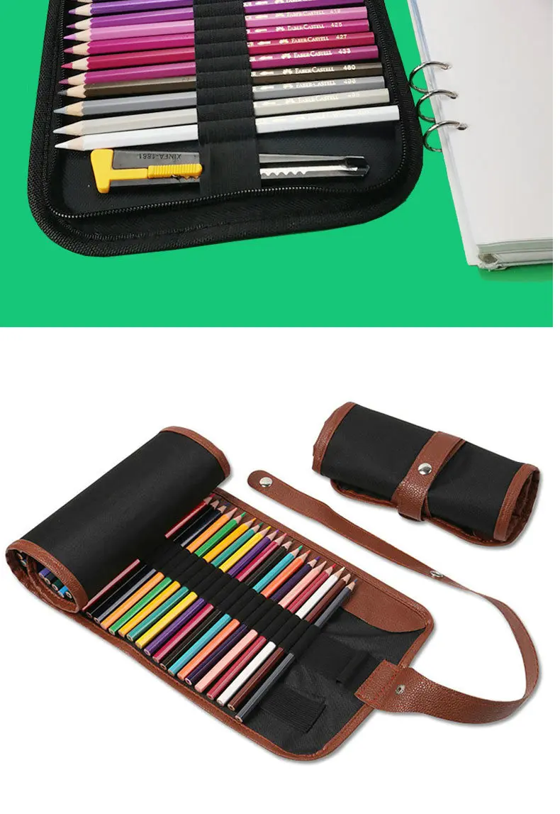 36/48/72 Slots Lápis Caso Estética Lona Rollable Escola Grande Capacidade Lápis Coloridos Armazenamento Roll Up Case Para Artista