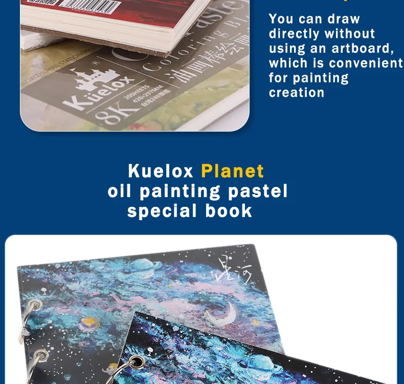 Kuelox profissional paiting a óleo pastel especial livro/papel 20 folhas 240g/m2 de base giz giz crayon arte doodle/grafite novo