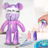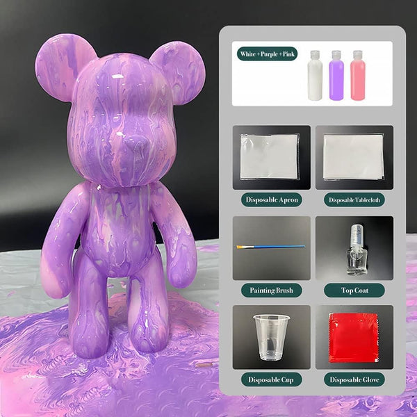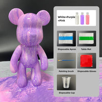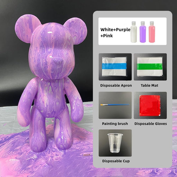 DIY Painting Fluid Bear Teddy Bear Violent Bear Gloomy Bear Painting Kit Set Creative Home Decorations Handmade Doll Figurine Toys Gift for Birthday Valentines (9.05 inch, Purple+White+Pink)