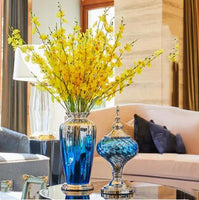 AOOKMIYA Modern Creative Blue Glass Vase Ornaments Home Furnishing Decoration Crafts Livingroom Cafe Bar Desktop Fake Flowerpot Figurines