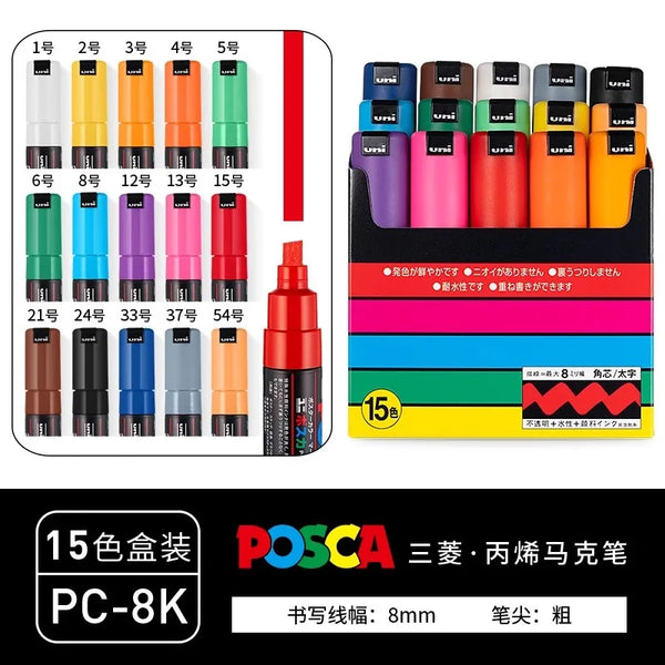 15pcs UNI POSCA Marker Pen PC-8K POP Advertising Poster Graffiti Pen 8mm Manga Painting Hand-painted Permanent pen Art Supplies