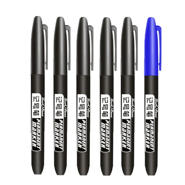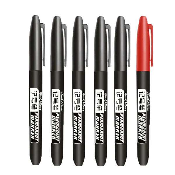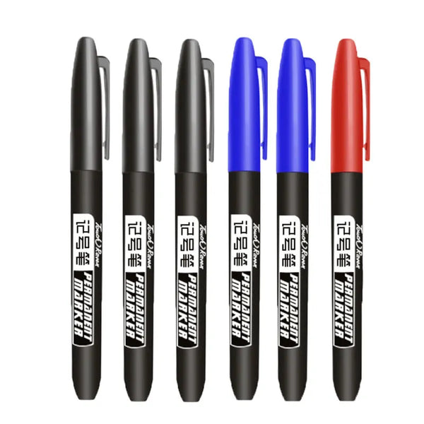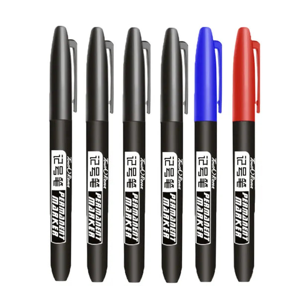 6 PCS Permanent Marker Pen Manga Drawing Markers Black Blue Red Waterproof Ink Sketch Pens Stationery Art School Supplies