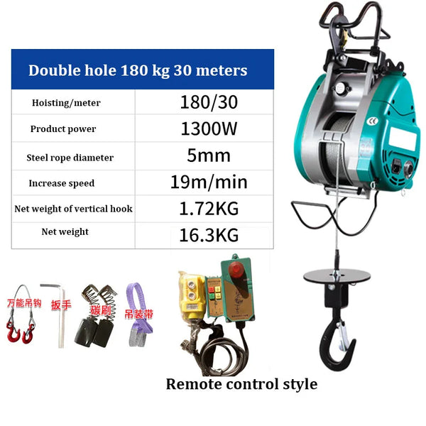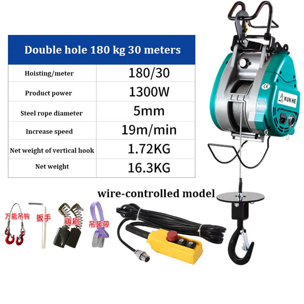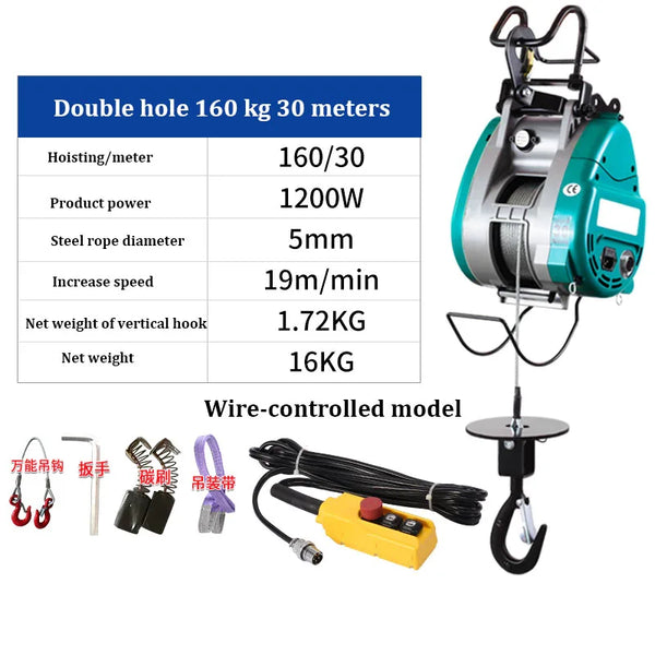 Guincho elétrico portátil da grua, dobro-furo, pequeno, King Kong, corda de fio pendurada, guindaste, 220V