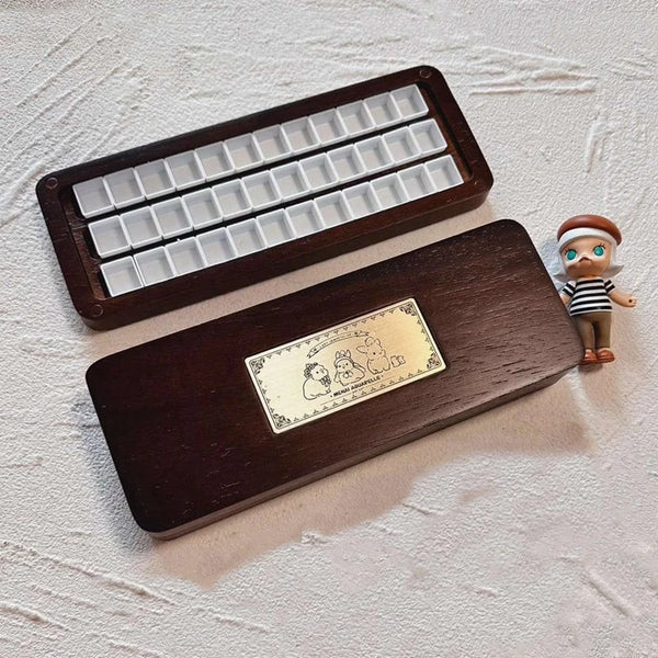 AOOKMIYA Walnut/Sapele Wooden Empty Watercolor Paint Box With Half Pans Professional Paint Palette Tray For Painting Art Supplies