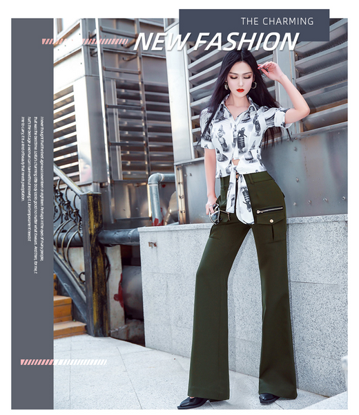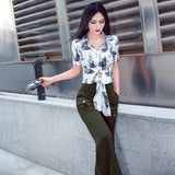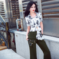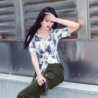 AOOKDRESS summer European and American printed women's shirt new fashion temperament handsome short bodysuit