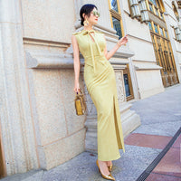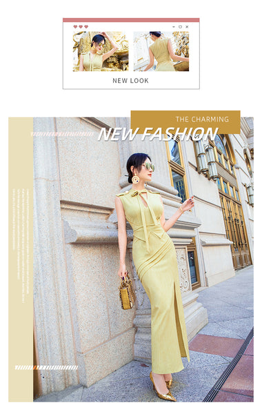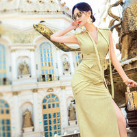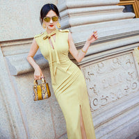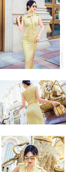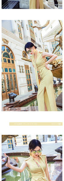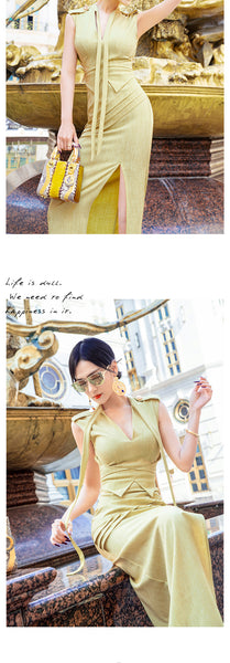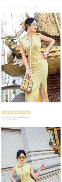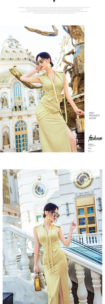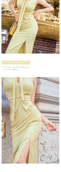 AOOKDRESS summer sexy V-neck ribbon dress cover belly new temperament sleeveless open fork long skirt in the long
