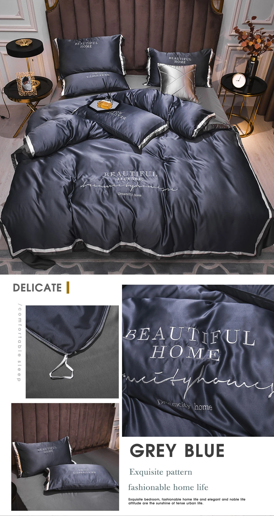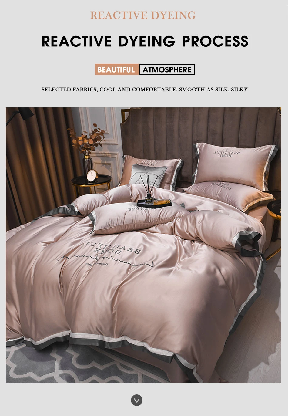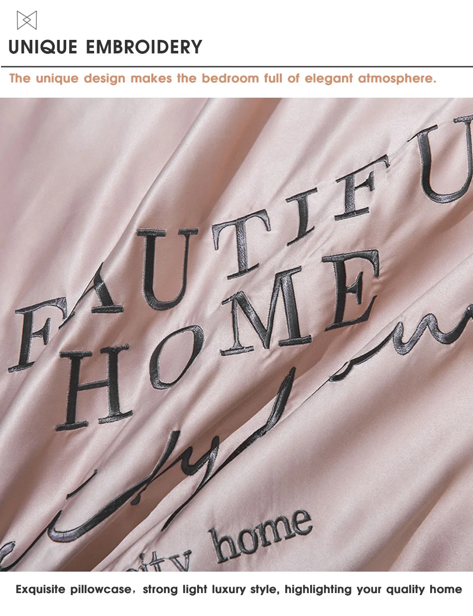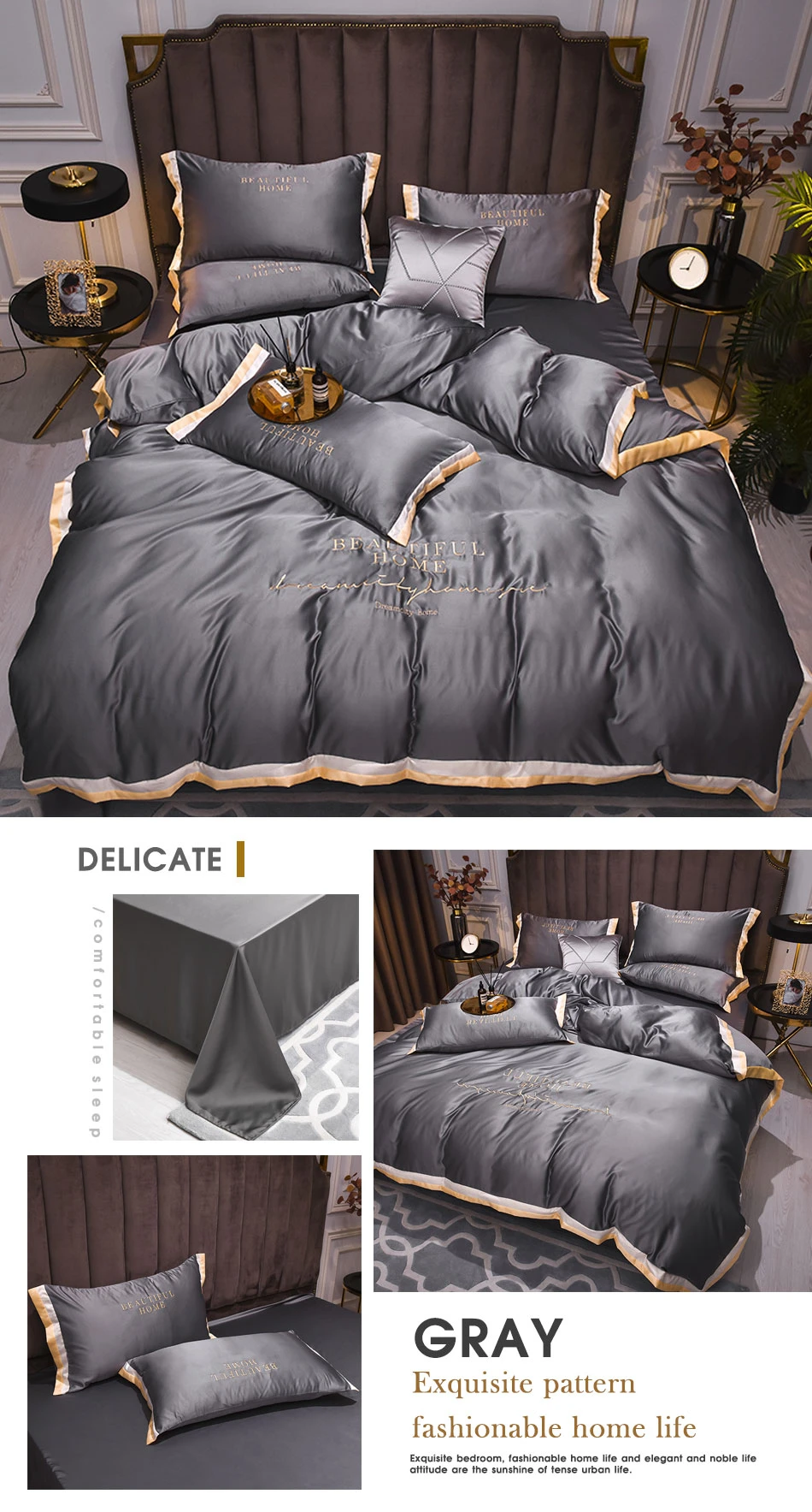 AOOKMIYA MIDSUM Luxury Bedding Set 4pcs Embroidery Duvet Cover Bed Sheet Pillow Cases Queen King Size Fitted Sheet High-End Home Textile