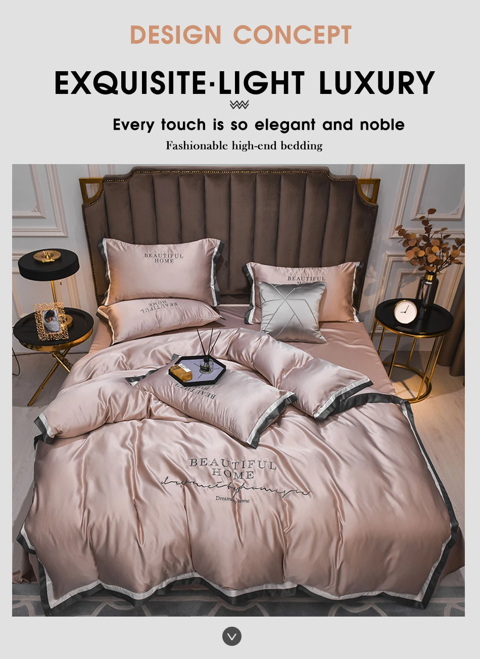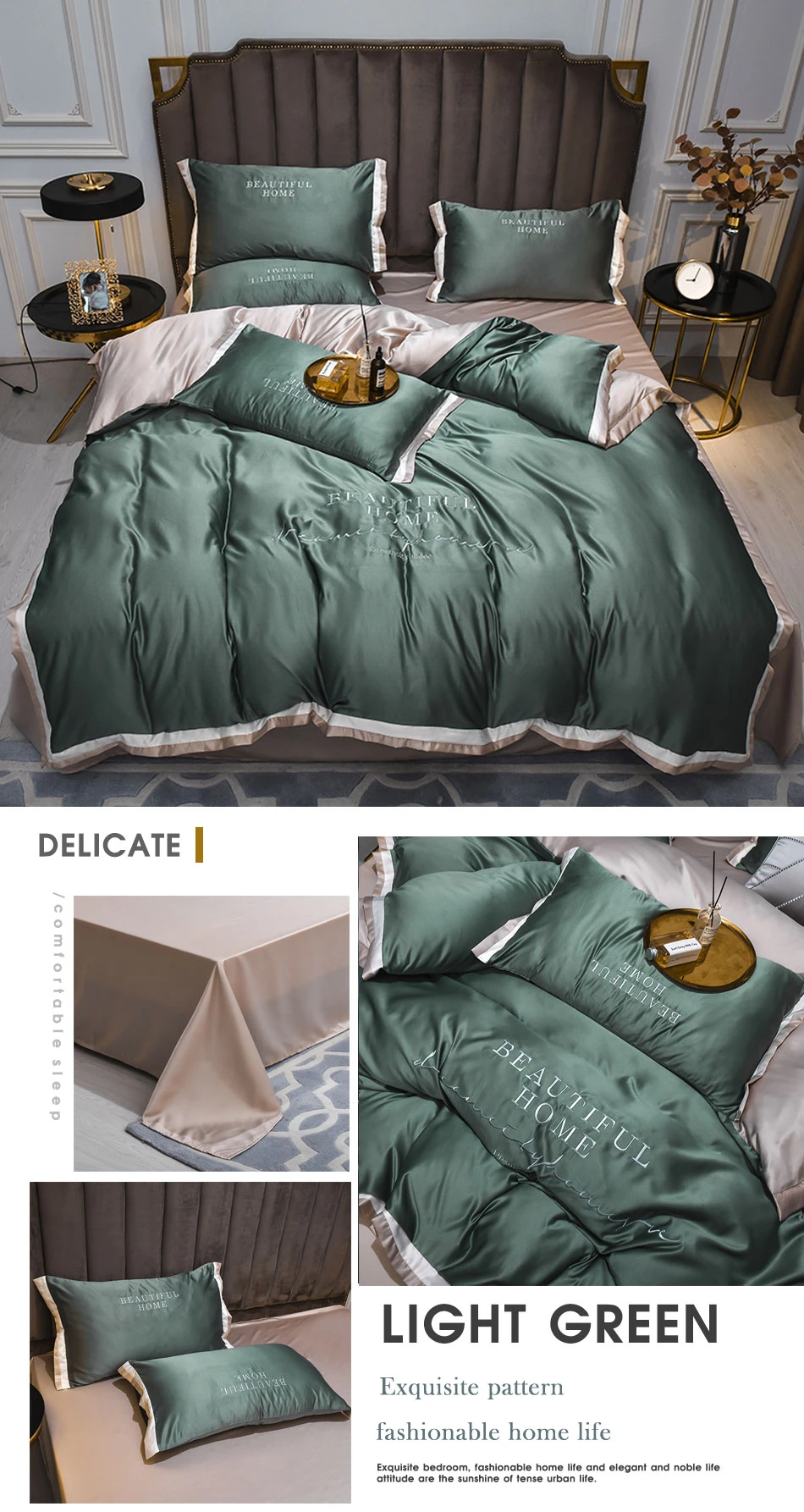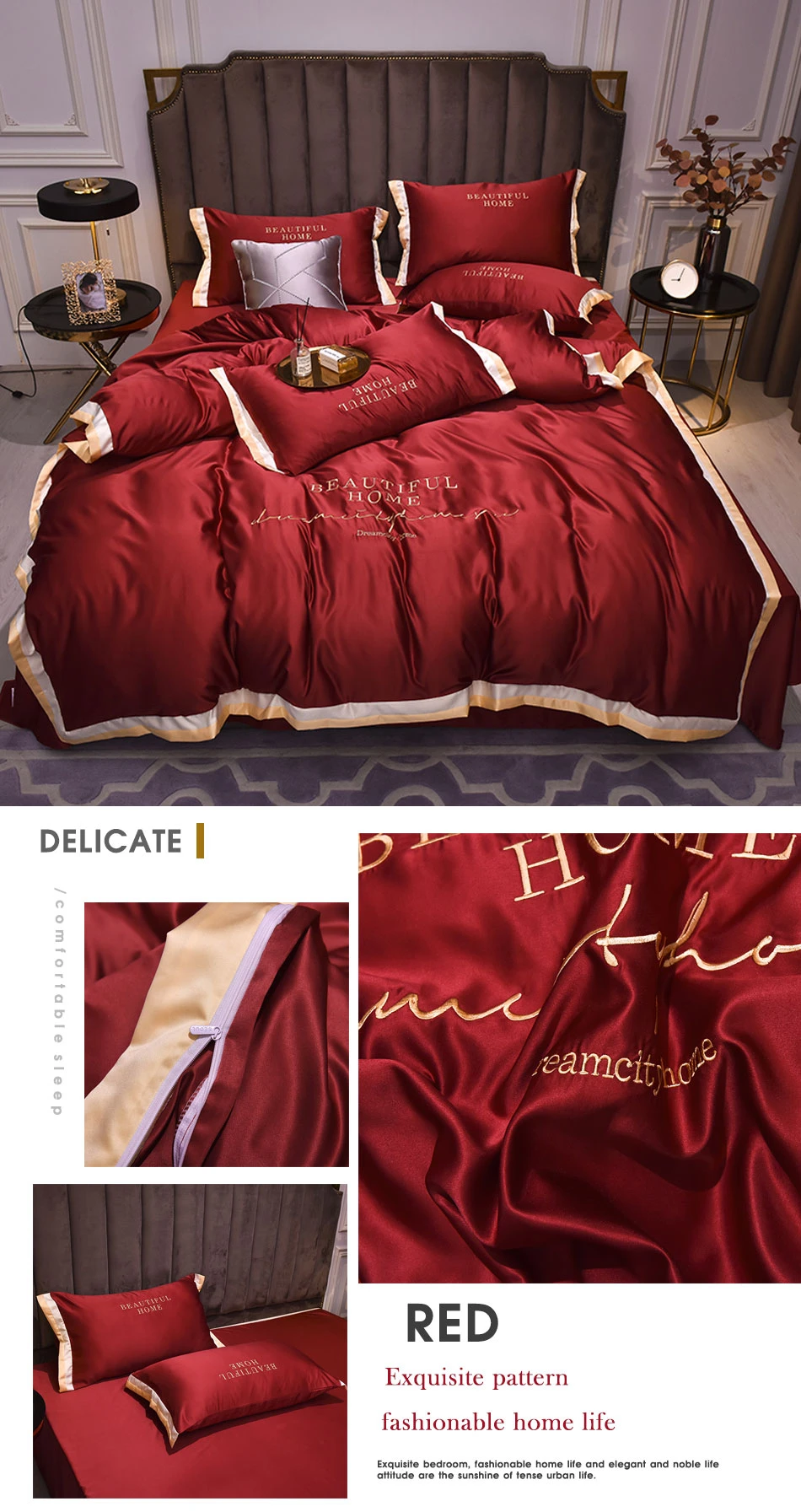 AOOKMIYA MIDSUM Luxury Bedding Set 4pcs Embroidery Duvet Cover Bed Sheet Pillow Cases Queen King Size Fitted Sheet High-End Home Textile