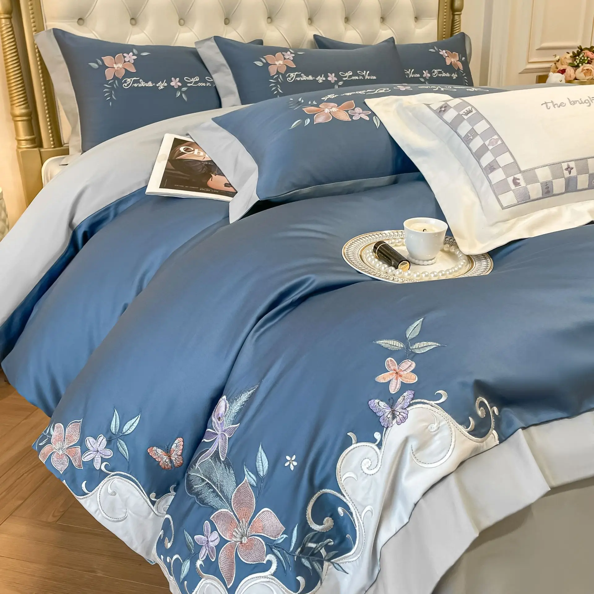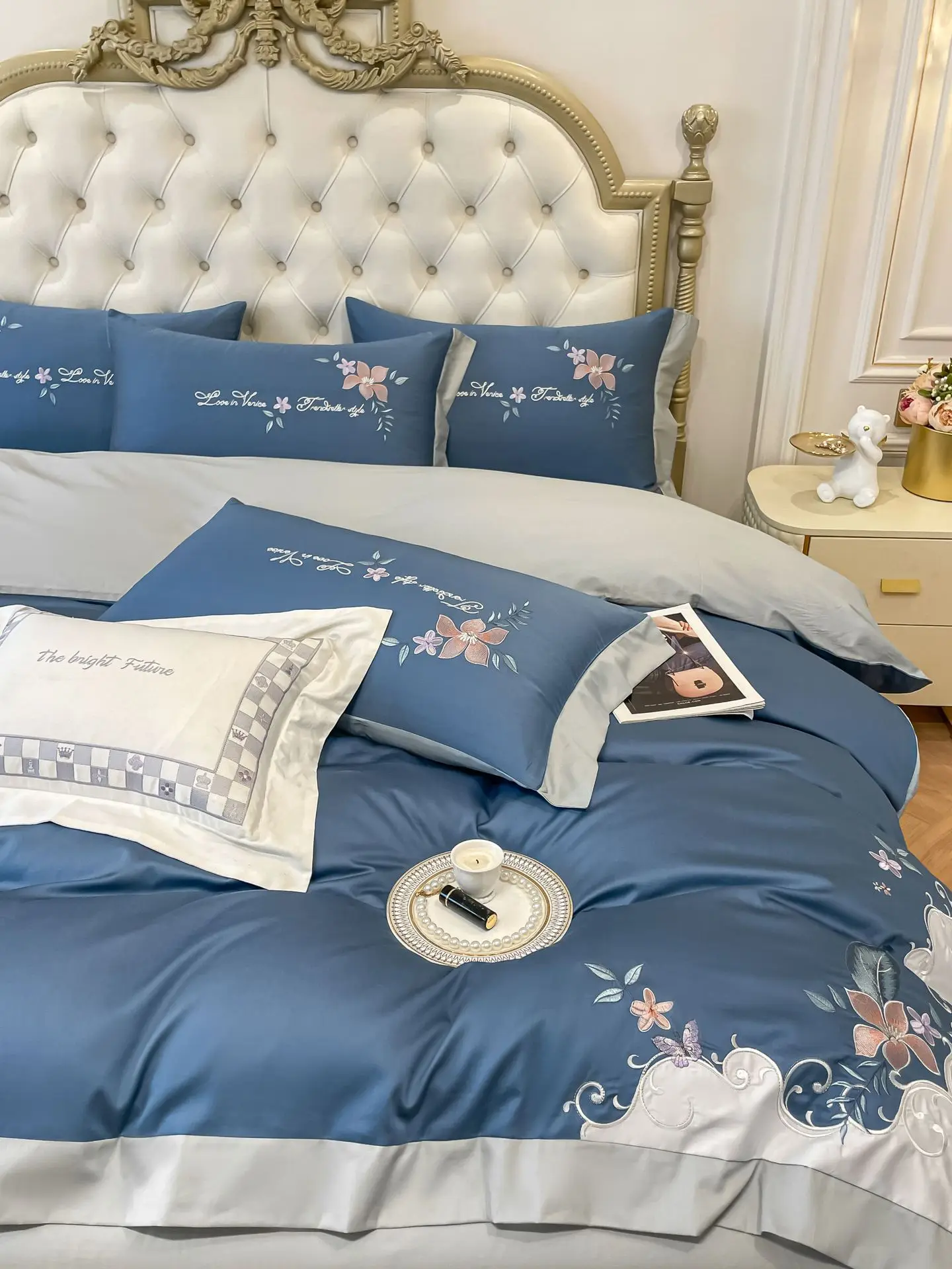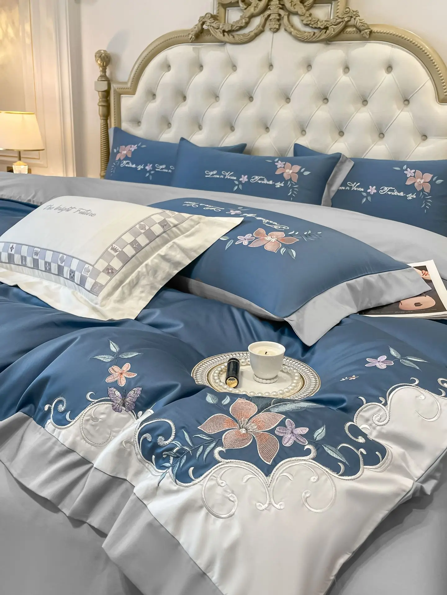 Light Luxury Bedding Set Pure Cotton Embroidery Duvet Cover Fitted Bed Sheet and Pillowcases Queen King Size Bed Comforter Set