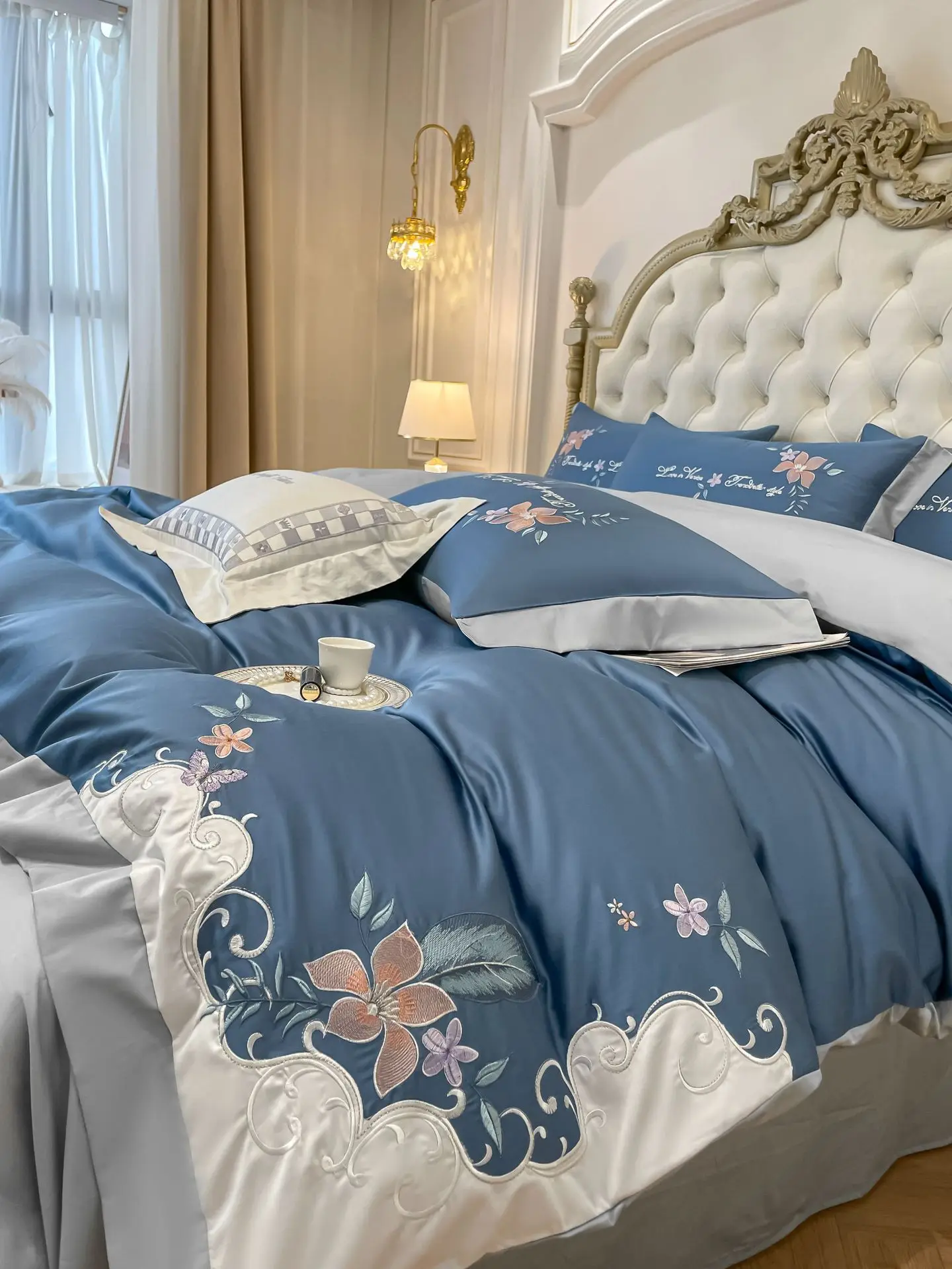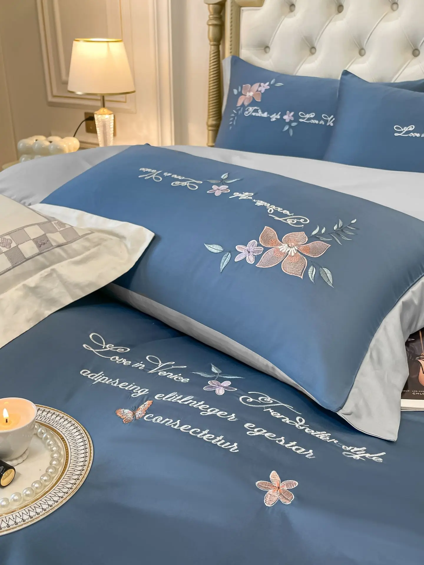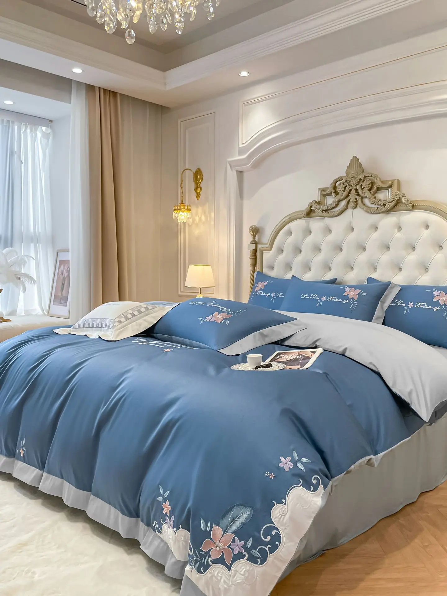 Light Luxury Bedding Set Pure Cotton Embroidery Duvet Cover Fitted Bed Sheet and Pillowcases Queen King Size Bed Comforter Set