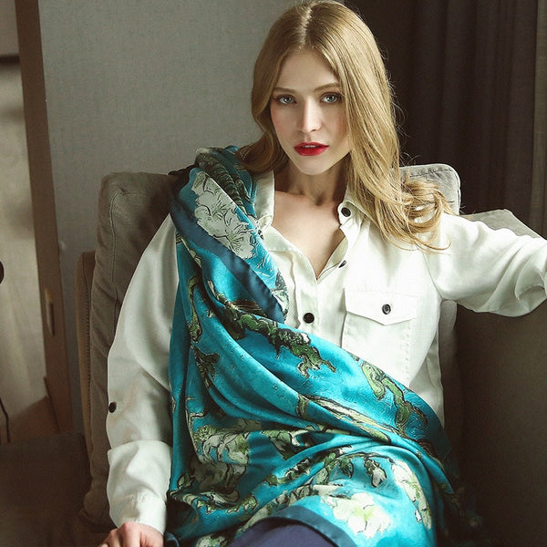 New Design Print Women Square Scarf New Blue Poncho Foulard Femme Bandana Big Neck Silk Scarves 90*90CM Painting Square Scarves