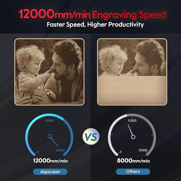 • 【Ultra-Fine Laser Spot】 AlgoLaser DIY KIT Laser Engraver machine power is 72W, and output power is 10W, it is designed to be smarter, faster, more accurate and easier to use. Ultra-fine laser focal spot is reduced to 0.05x0.1mm,which makes the engraving effect more refined and outstanding . The engraving speed can be as high as 12000 mm/min, movement speed up to 20000mm/min.