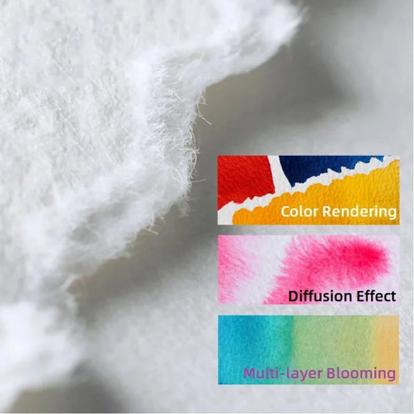 Watercolor Paper with High Absorption: The watercolor paper is made of premium long-staple cotton with high absorbency, which can better absorb colors of pigments and shorten the time you have to wait for the paint to air dry.
