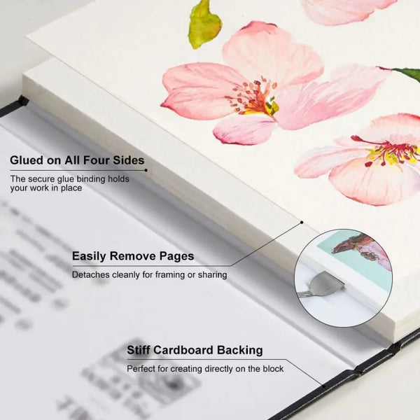 Artist-quality Cold-pressed Paper:The watercolor paper is sealed on all sides to better maintain the flatness and to provide wrinkle and moisture resistance, and the paper can be easily removed by scraping the seal with a card.