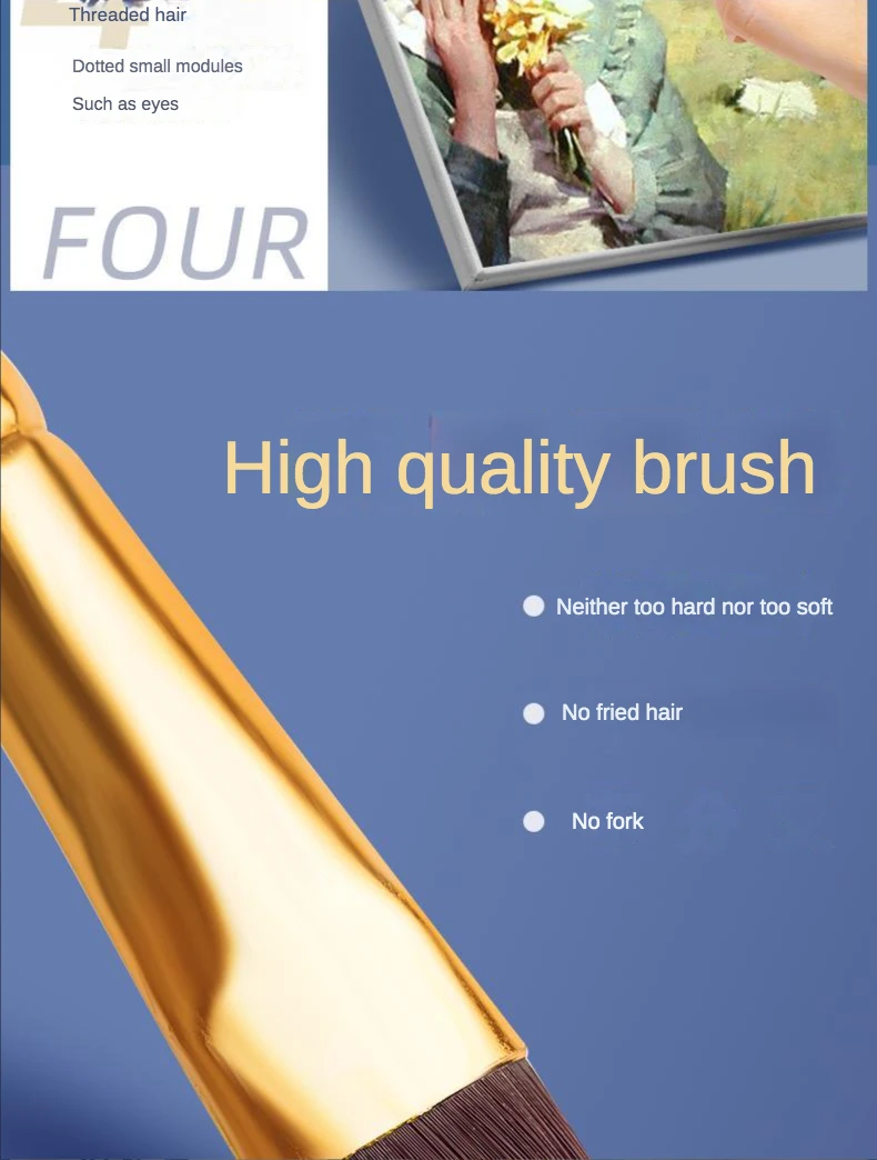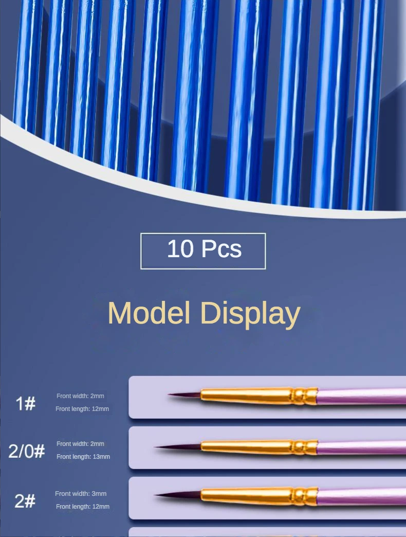 10 pincéis de tamanhos com pontas diferentes facilitam a mistura de cores e atendem às suas diferentes demandas de pintura.