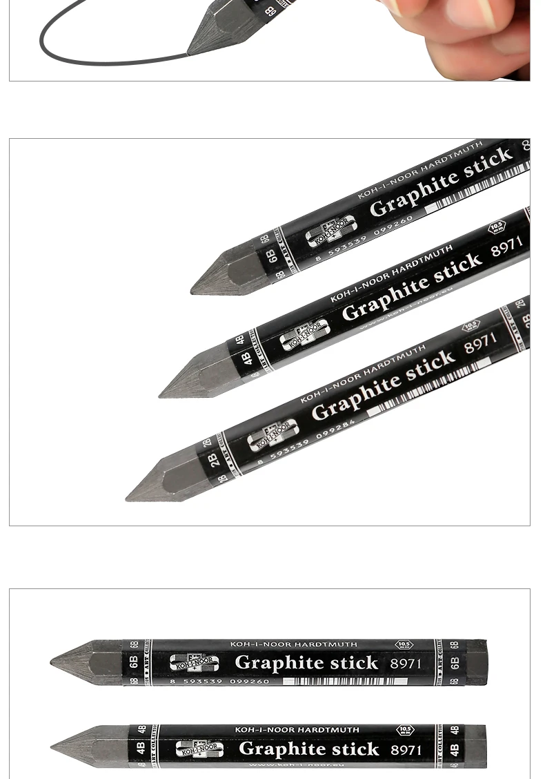 Features: Made of a mixture of high-quality graphite and clay, the pen barrel is short and thick, feels good in the hand, and has a unique shape. It is very convenient for drawing lines and coating surfaces. It is a good helper for sketching and sketching when going out.