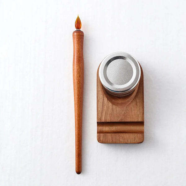Glass pen tip wooden pole dipping pen Material: Wood + Glass Pen length: 18cm Easy to use with wooden base