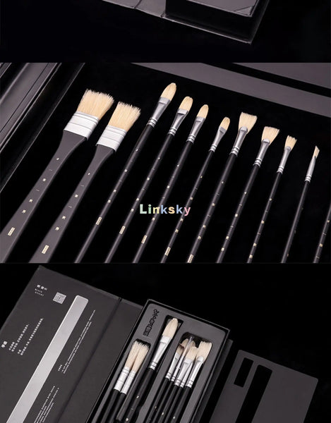 Miya-conjunto de pincéis himi com 12 peças, escova de cerdas de porco com cabo longo, escova de cerdas de porco selecionada cuidadosamente, conjunto com presente maravilhoso