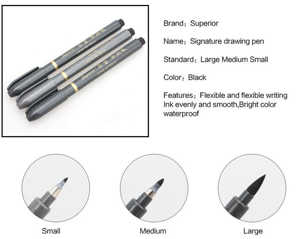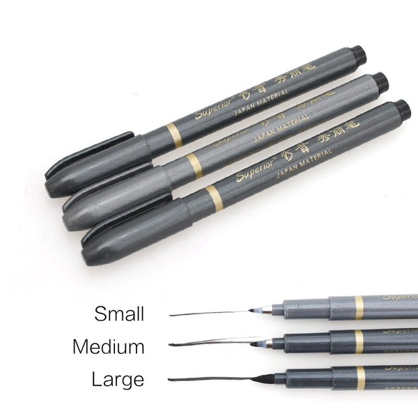 Sketch Brush Pen Set 3 pcs/Lot Different Size Japan Material Art Marker Calligraphy Office Drawing Signature Art Pen