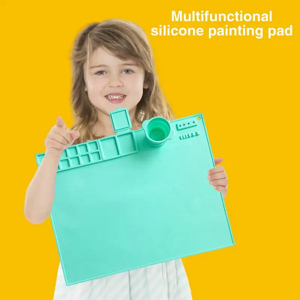 1.Exceptionally Resilient: Our painting mat is expertly made with incredibly durable silicone material, ensuring long-term use without deformation. The soft and comfortable texture provides a smooth and enjoyable painting experience.