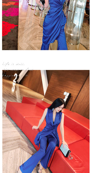 AOOKDRESS suit female summer new British style sleeveless suit collar jacket jacket temperament trousers two-piece suit