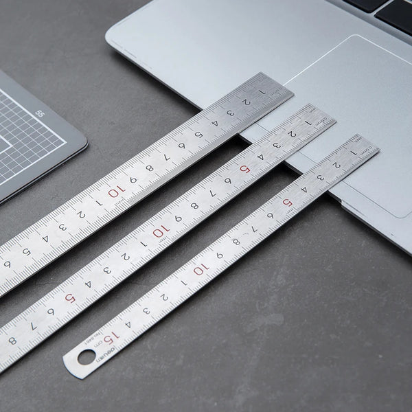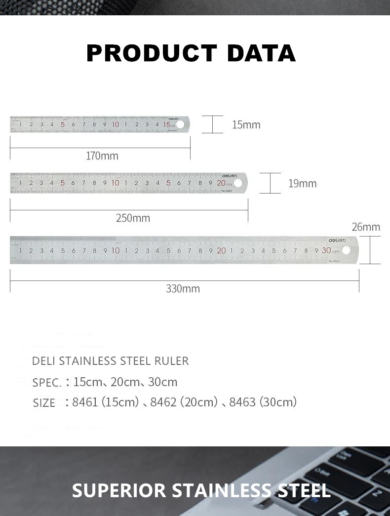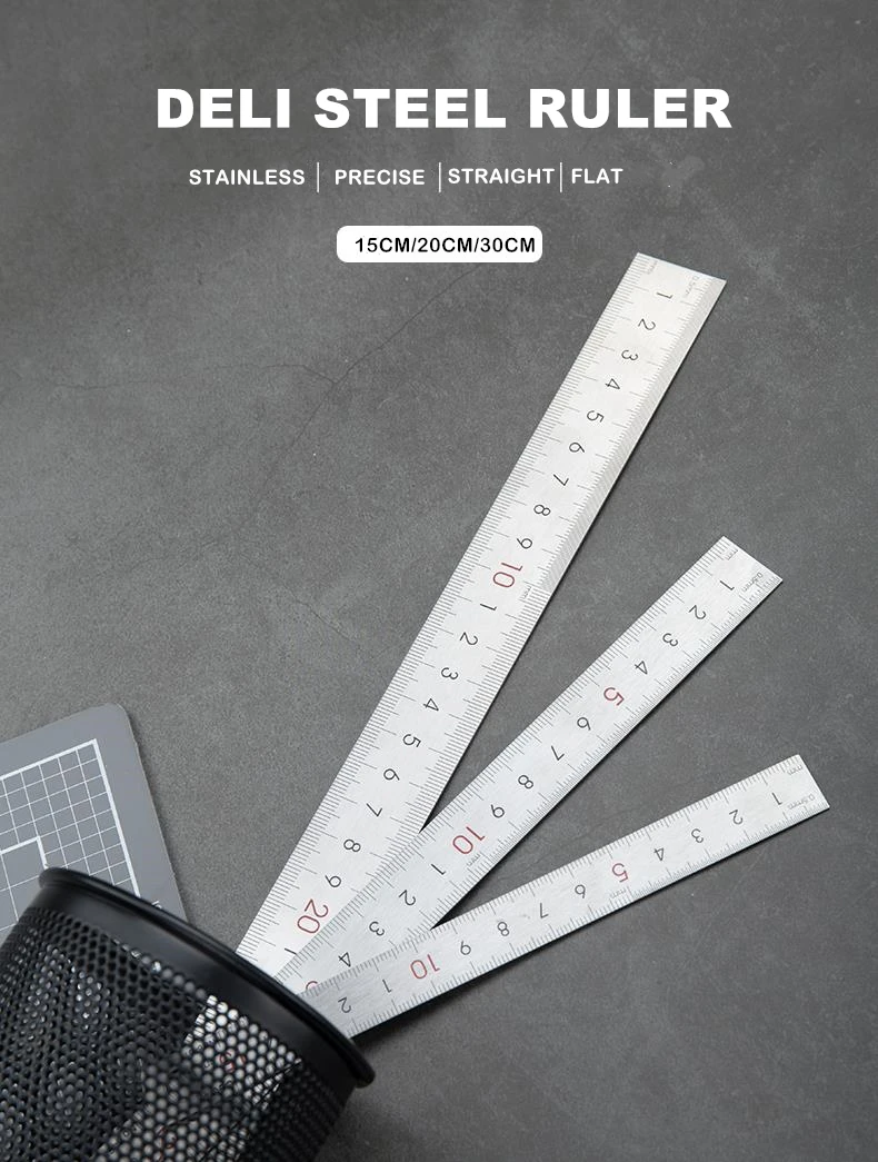 DELI Stainless Steel Straight Ruler Precision 15-30CM Flat Thick Metal Measuring Scale Tools Office Supplies