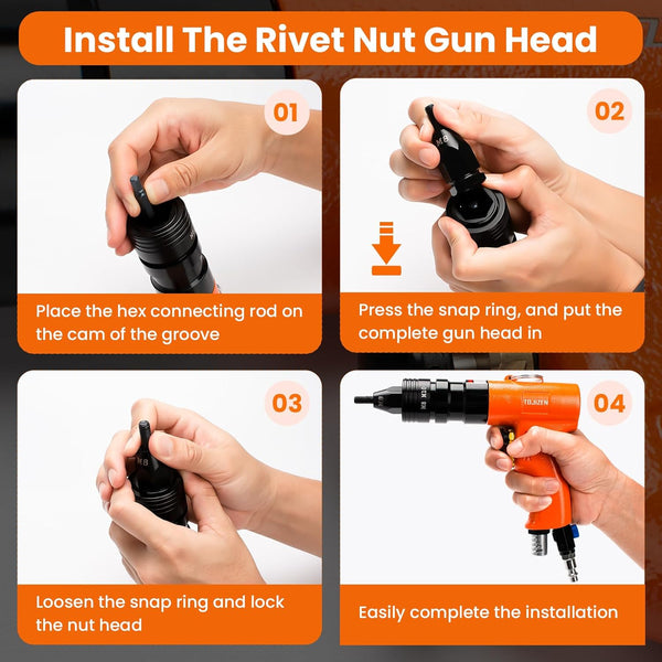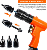 The rivet nut tool rivet nut kit uses an air-powered source to provide fast, stable, and reliable work, making it a superior alternative to traditional hand rivet nut tools. Its efficient operation ensures that you can finish your work faster and with less effort. The quick-release design makes it easy to install and replace rivet nuts, saving you valuable time.
