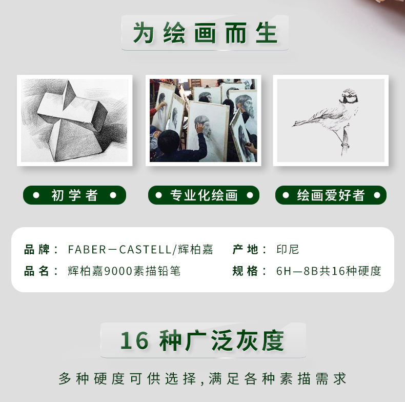 Faber-Castell 9000 Graphite Sketch Pencil Sets Art 2H - HB set of 8
