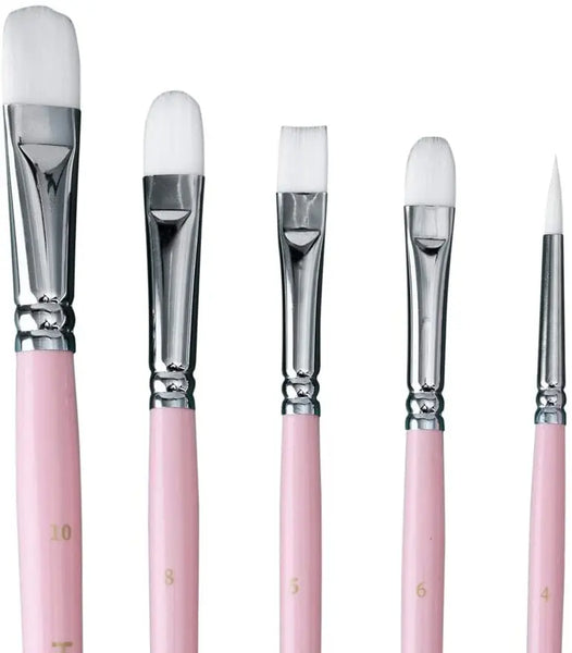 Miya Himi 5Pieces Kids Artists Gouache Paint Brushes Set for Acrylic Oil Watercolor Face & Body Gouache Painting with Hog Hairs