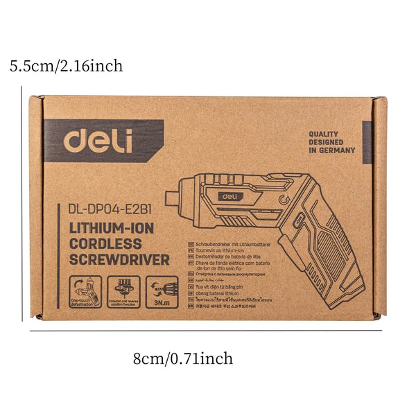 • Cordless Convenience :The Deli 3.6V Electric Screwdriver is cordless, making it easy to use and maneuver without any restrictions.