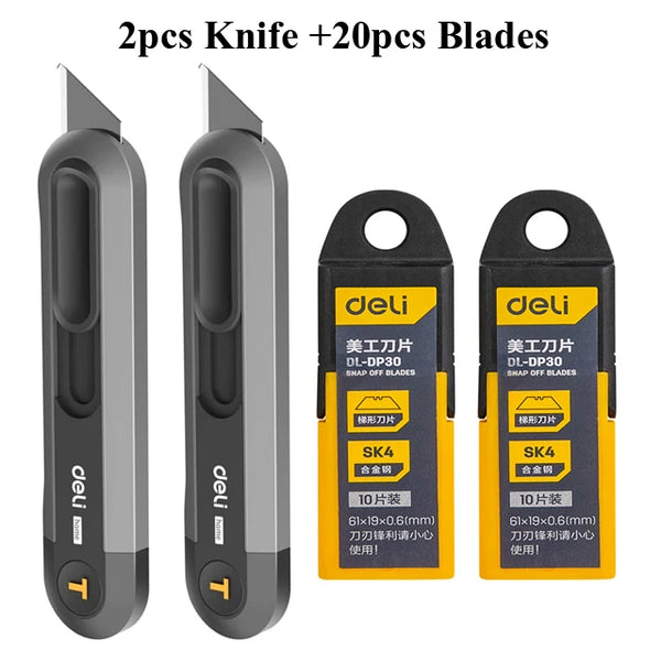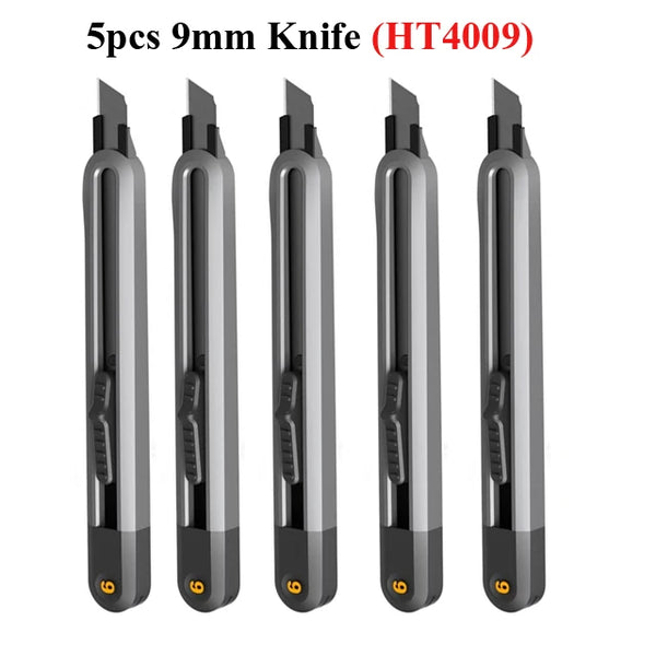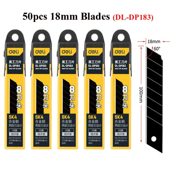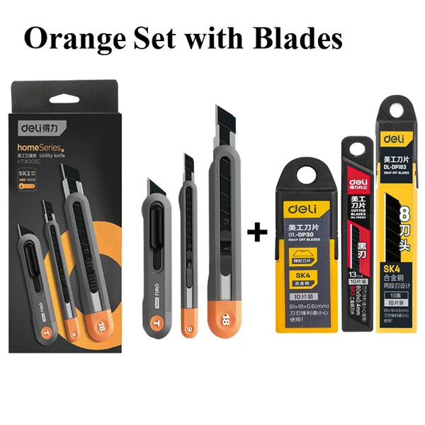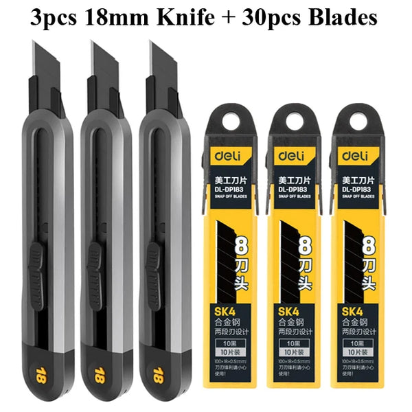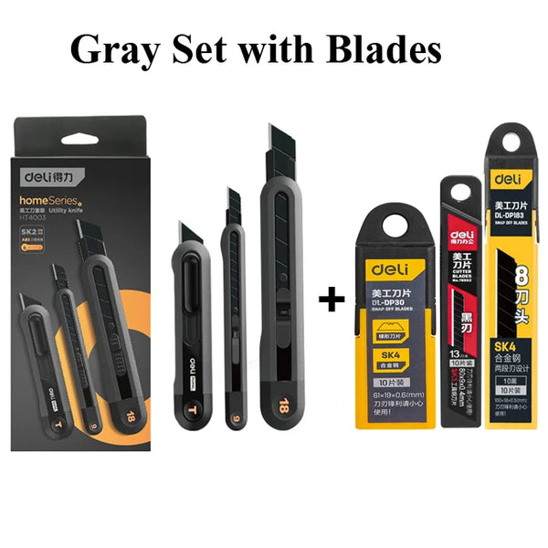 Deli Heavy Duty 9mm/18mm/Auto-Retractable Utility Knife, Sharp Black SK2 Carbon Steel Blades Box Cutter for Cardboard, Cartons