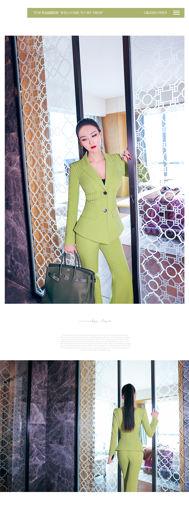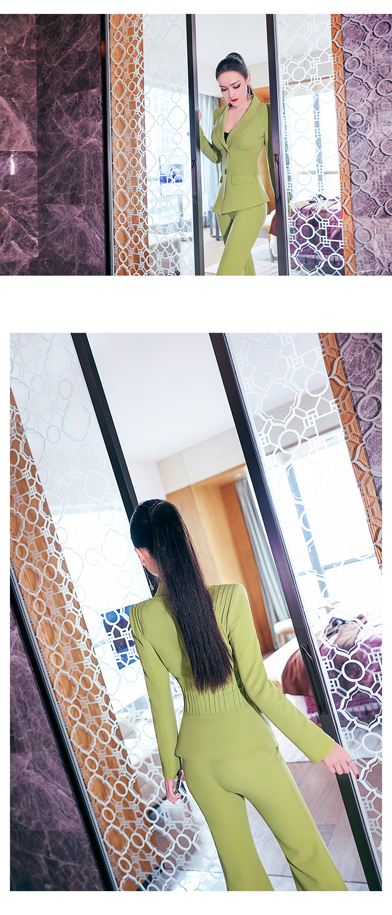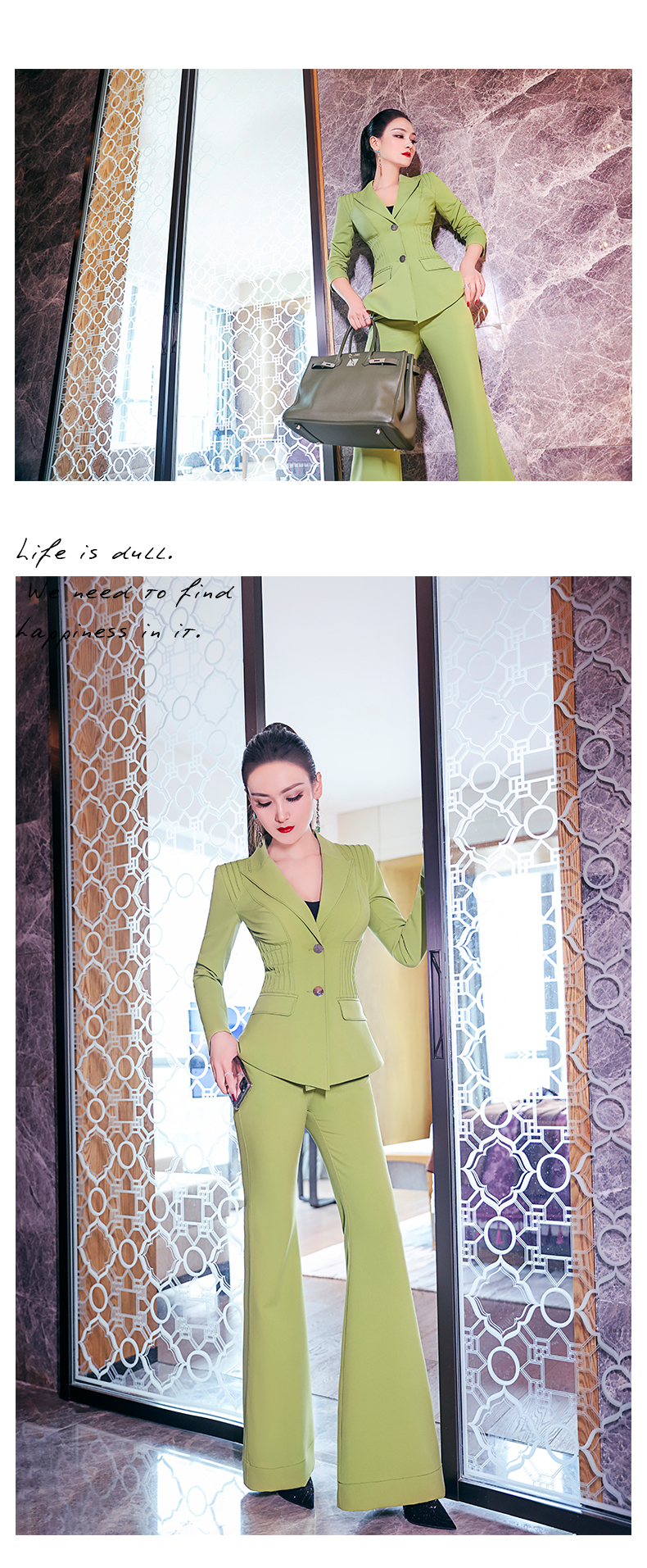 AOOKDRESS Spring OL formal suit 2021 new mint green pleated waist small suit and micro flared pants two-piece suit