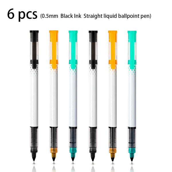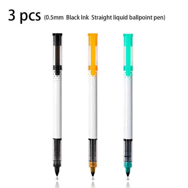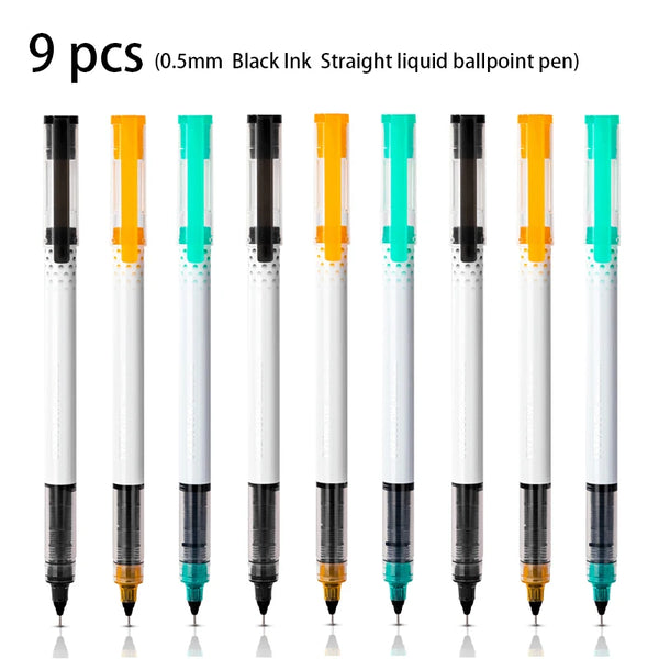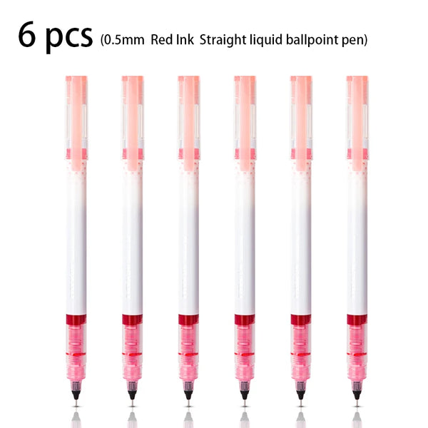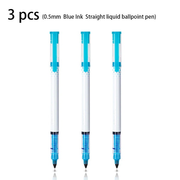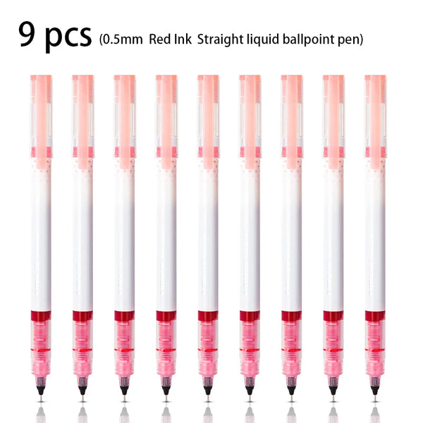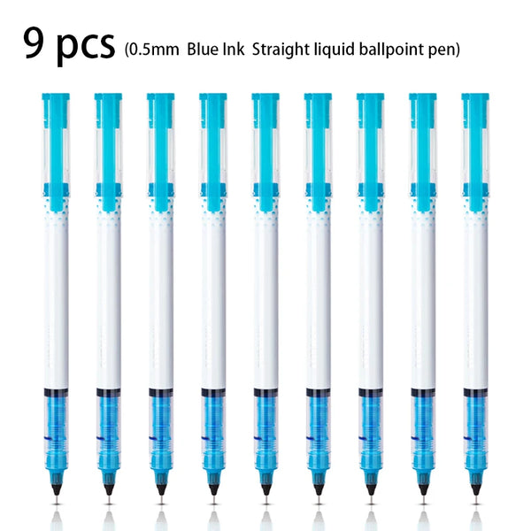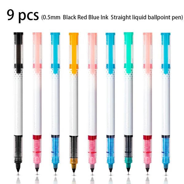 3/6/9pcs Straight Liquid Ballpoint Pen 0.5MM Black Blue Red Ink Office Signature Pen High Quality Pen Cheap Pen Stationery