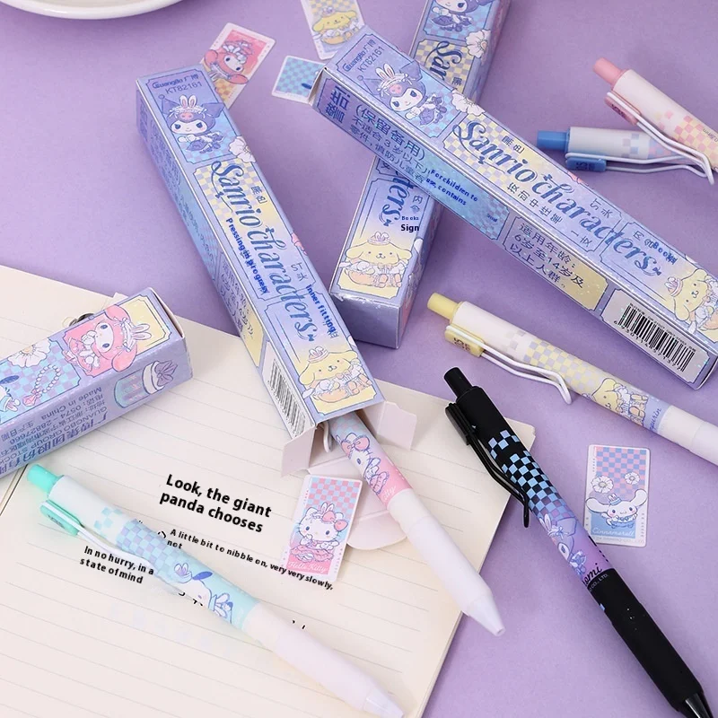 Sanrio 24pcs Gel Pen 0.5mm Carbon Black Laser Blind Box St Head Quick Drying Pressing School Supplies Writing Stationery