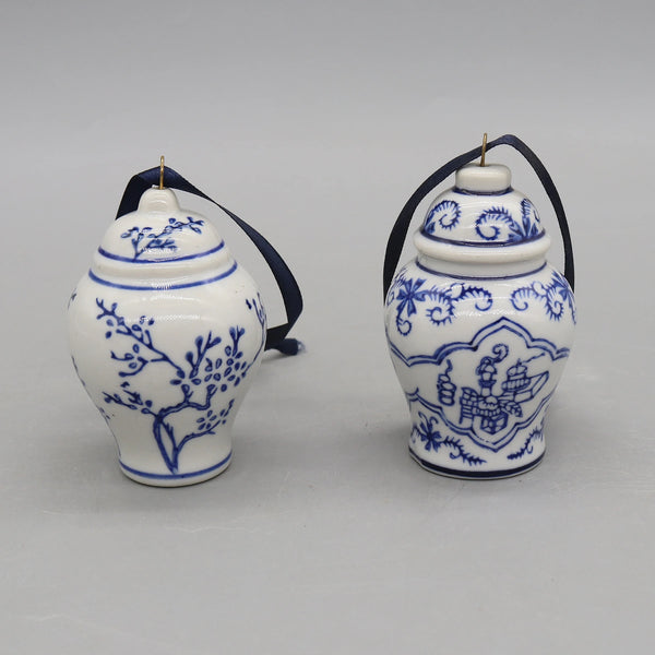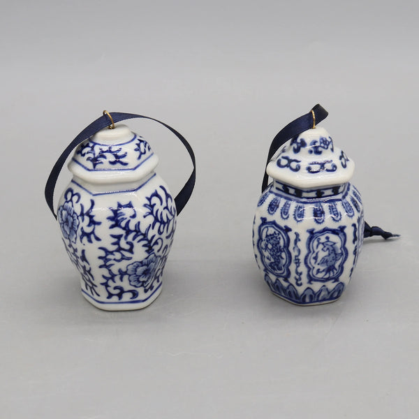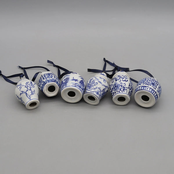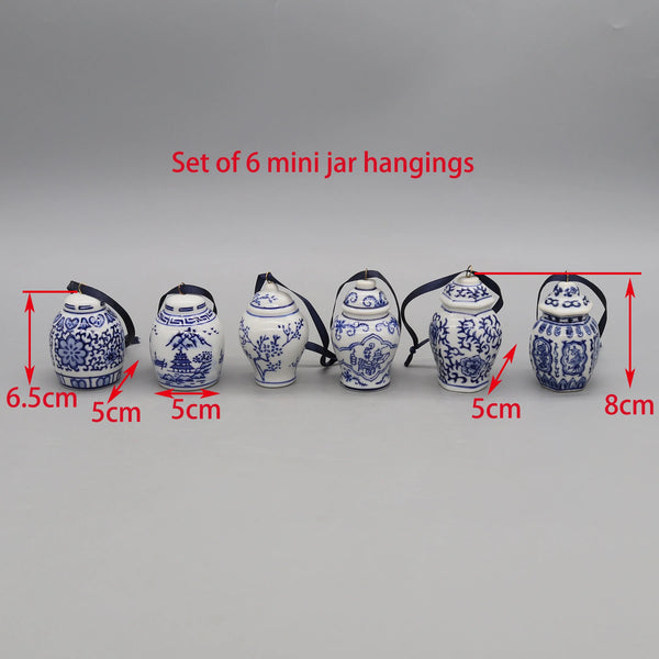 Set of 6 Ceramic Pendants, Hanging Ornaments, Blue and White Ceramic Jar Models