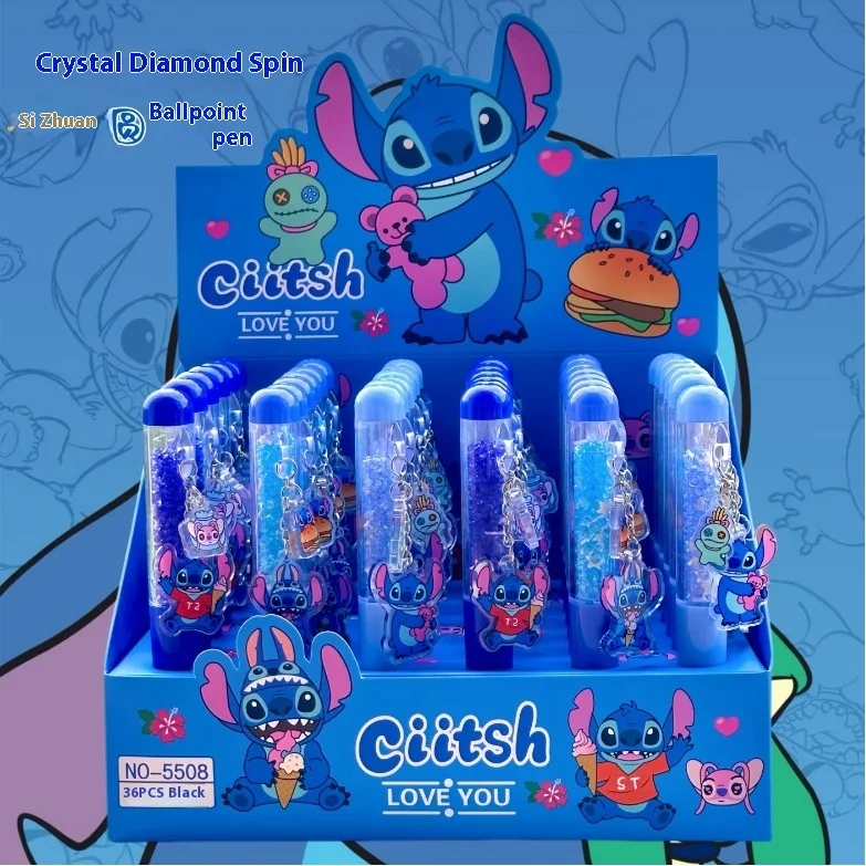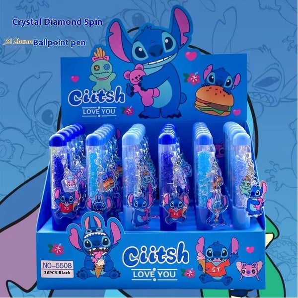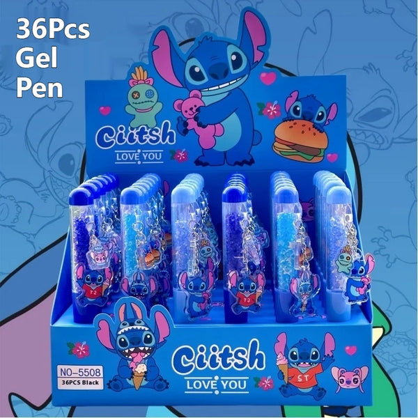 Stitch 36Pcs Gel Pen Cartoon Set Disney Cute Doll 0.7mm Black Diamond Pendant Acrylic Twist Pen Students Learn Stationery