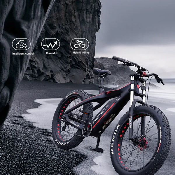 The lightweight carbon fiber frame increases the strength while making it as light as possible. With 624Wh Samsung battery capacity and 750W motor power, 45 miles single range and reliable gradeability can be guaranteed. 26 inches fat tires provide tremendous grip and mechanical stability. It's no doubt that KONTAX Cruiser is the most professional and cost-effective all terrain fat tire electric bike in the world.