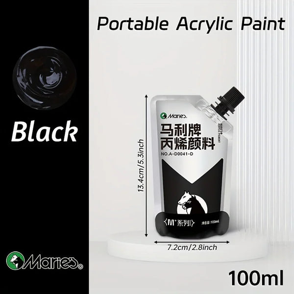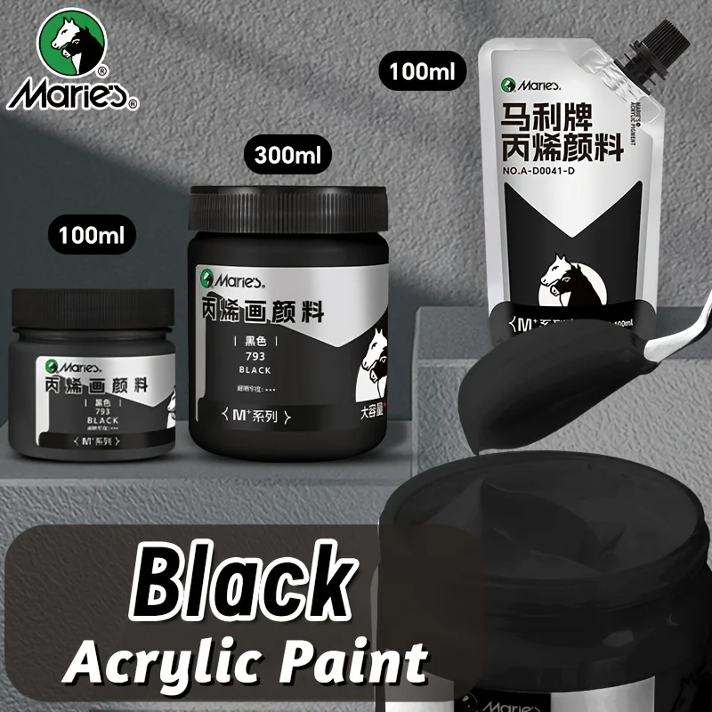 AOOKMIYA Marie's Black Acrylic Paint,1pc 100/300 ml 3.38 oz/10.1 oz,Creamy Texture Pigment for Rock,Wood,Canvas,Glass,Fabric,Walls