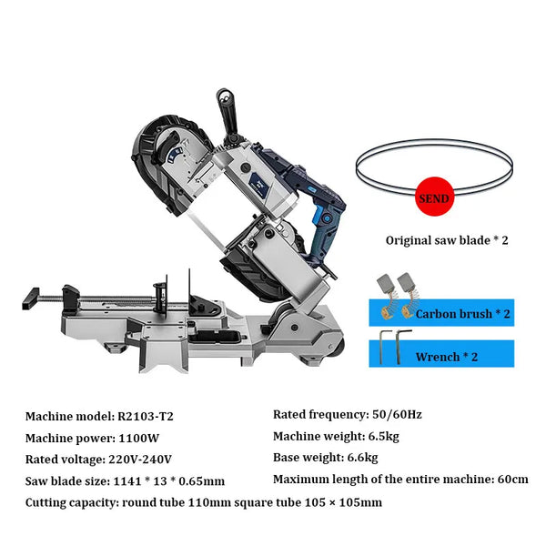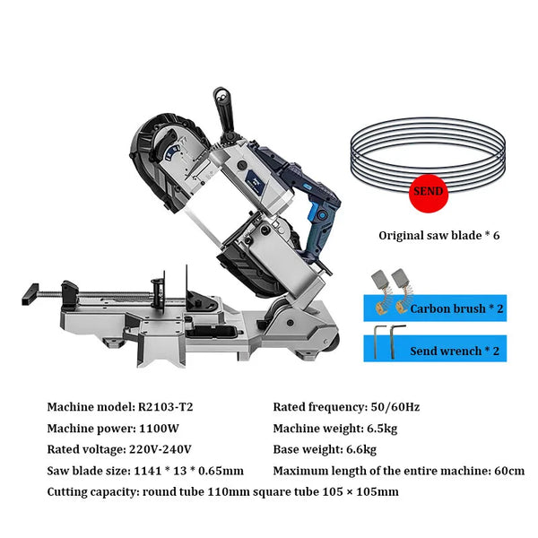 Serra de fita multifuncional sem fio, Base de aço removível, capacidade de corte, mão para metal e madeira