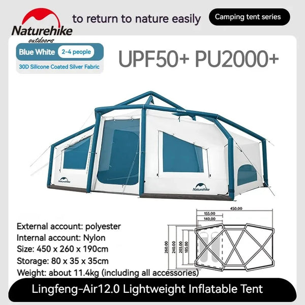 Naturehike Air 12.0 Outdoor Ultralight Inflatable Tent for 2-4 people PU2000mm Waterproof Travel Tent Camping Equipment UPF50+