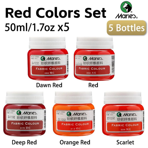 AOOKMIYA Marie's Red Colors Fabric Paint Set 5 Bottles,50ml/1.69oz Quick Drying for DIY Projects,T-shirt,Shoes,Bags for Adults,Students